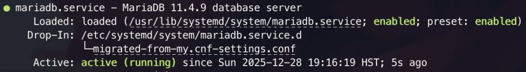 If everything went as expected, you should see MariaDB is now on version 11.4 and is active & running.